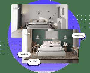 - 특징: 방 사진을 올리면 즉각적으로 다양한 인테리어 스타일로 변환해주는 가상 스테이징, 리모델링, 외관 개선 등 다양한 기능을 제공합니다.