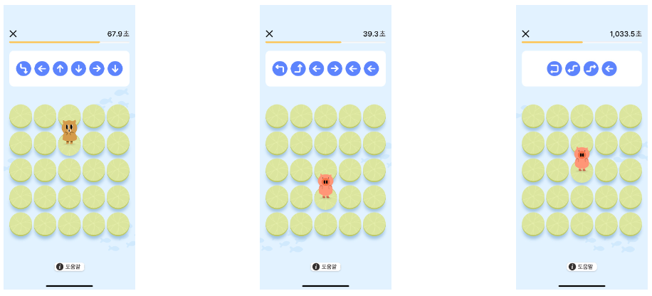 게임 방법: 캐릭터가 마지막에 도착할 위치를 찾는 게임으로 상단에 있는 화살표 방향대로 캐릭터를 이동해 도착지를 찾아 주세요. 돼지의 최종 도착지는 어디일까요?