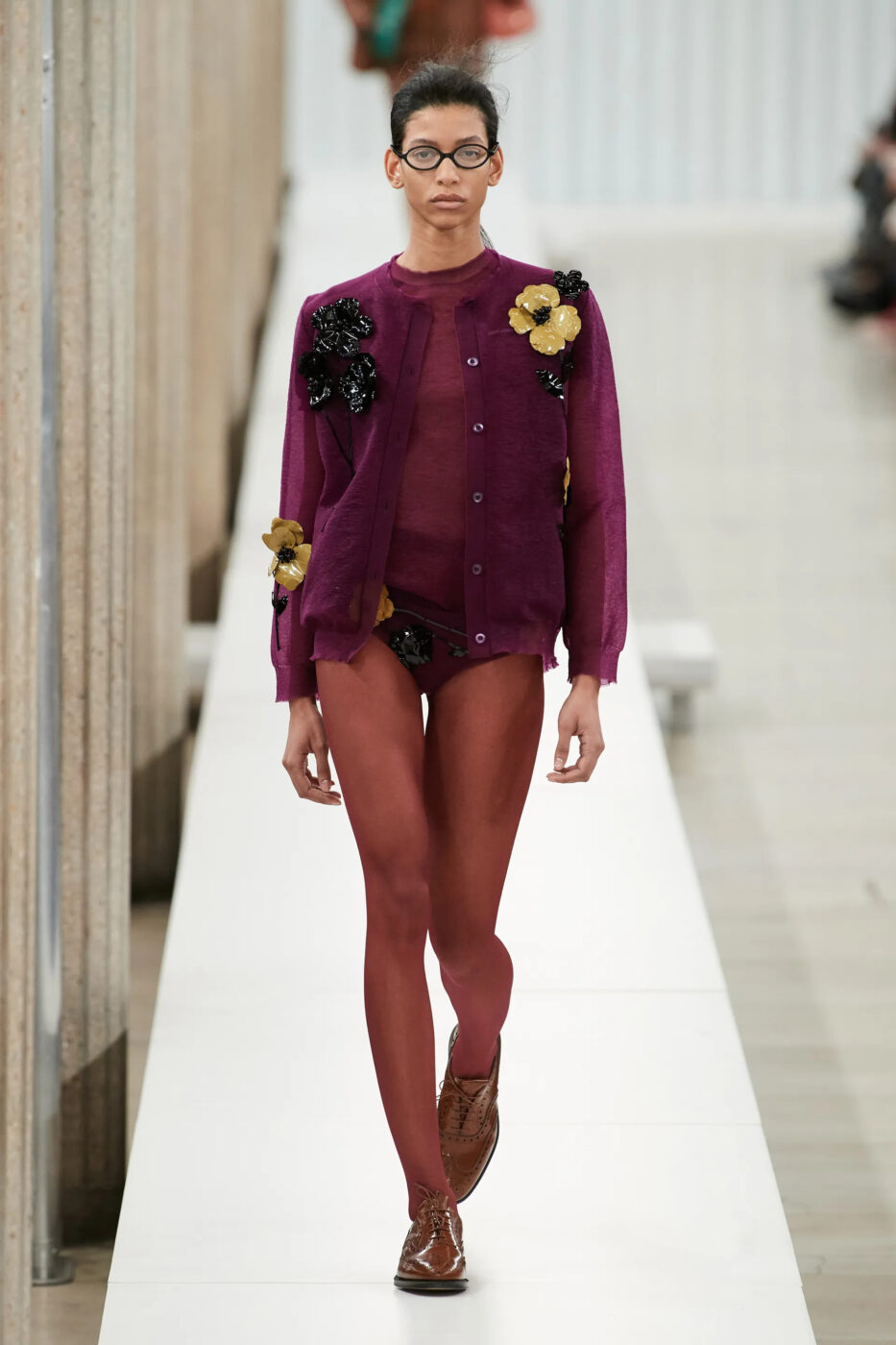 빨간 타이츠를 시스루 스커트, 그리고 언더웨어와 매치하는 스타일링이 어딘가 부담스럽다고 느꼈던 걸까요? 2024 S/S 컬렉션에서는 보다 현실적인 룩을 제안하는 브랜드들이 눈에 띄었습니다. 프로엔자 스쿨러의 룩은 출근용으로도 손색없었습니다. 포멀하고 미니멀한 무드의 재킷과 수트 팬츠에 빨간 타이츠를 보일 듯 말 듯 매치했거든요. 비대칭 스커트를 활용한 지방시의 룩에서는 우아함이 느껴졌죠. 빼꼼히 드러난 빨간 발이 은은한 포인트가 되어줄 수 있다는 사실을 확인하는 순간이었습니다.