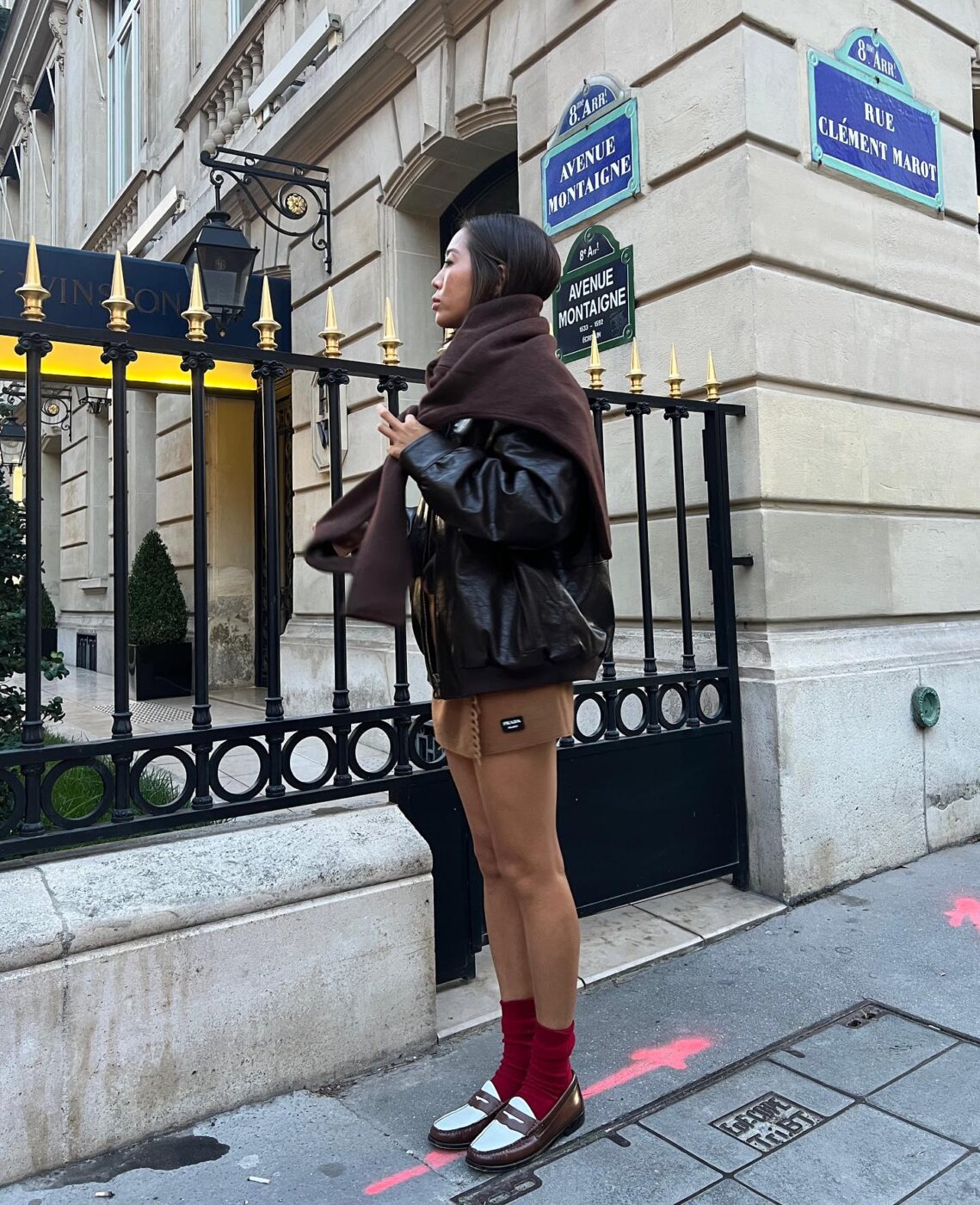 패션 피플은 이를 조금 더 웨어러블한 방식으로 해석하며, 타이츠 대신 양말을 활용하고 있습니다. 지금처럼 쌀쌀한 날씨에 더욱 잘 어울리는 아이템이기도 하고요. 빨간 양말은 검은색 구두와 더할 나위 없는 궁합을 자랑합니다. 블랙과 레드라는 클래식한 컬러 조합을 활용하는 거죠. 미우미우의 페니 로퍼와 생지 데님, 그리고 레더 재킷을 활용한 룩에도 확실한 컬러 포인트가 되어줬고요.
